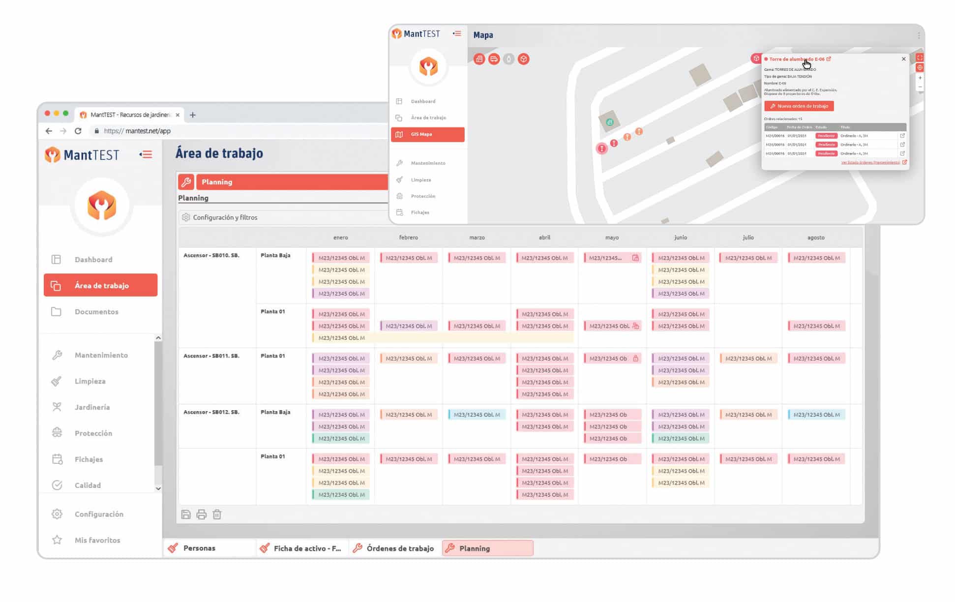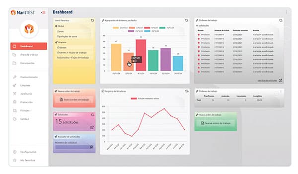 - Preventive maintenance (MantTEST): digitization of the preventive plan with inventory of more than 6,000 assets, protocols and visual planning to coordinate actions and improve forecasting.